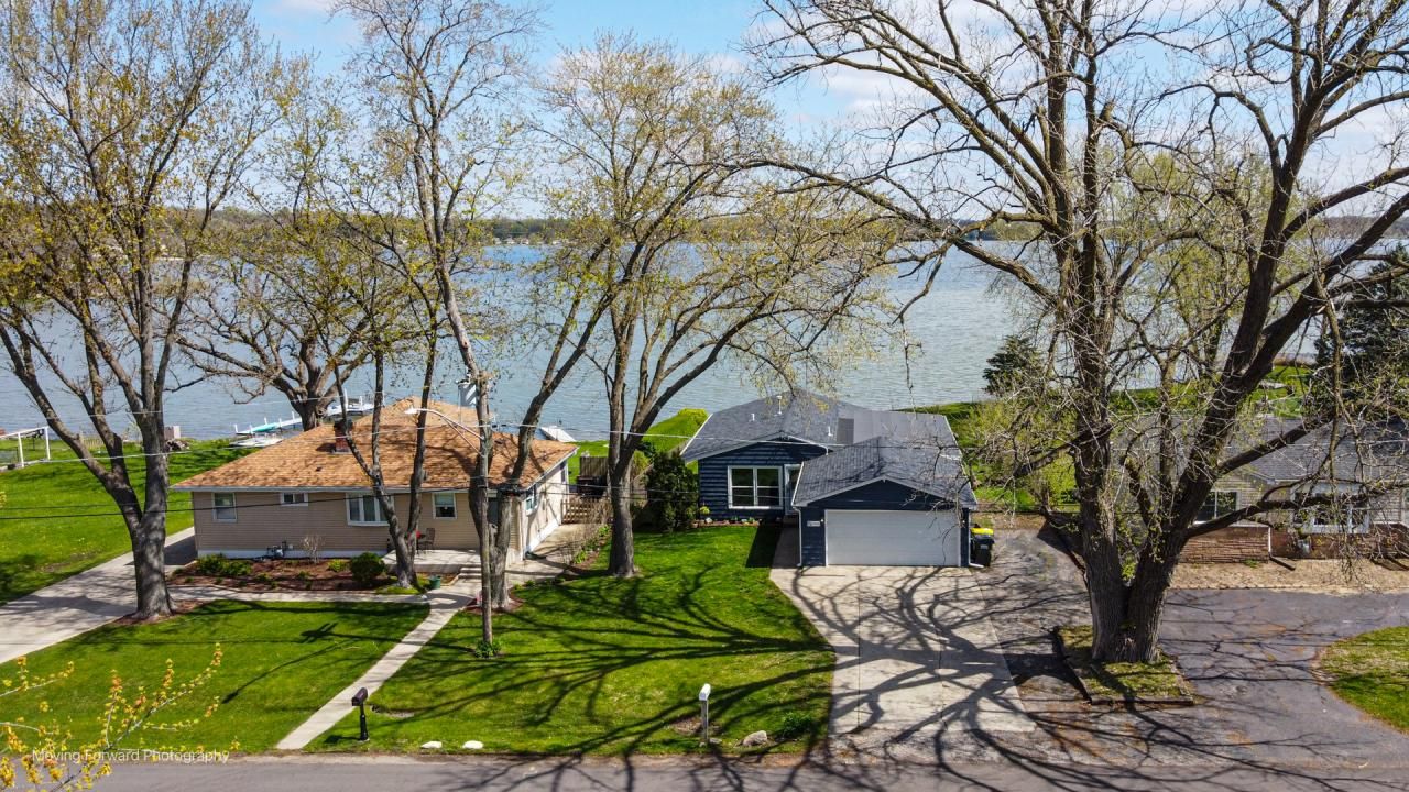 WOW!! Wether this will be your permanent residence or your weekend getaway, you won't want to leave this amazing lake front home!! From the catheral ceilings to the major updates, you can move right in and enjoy. There's a flex room when you enter that can be used as a den, dining room or living room. Your kitchen and family room area have sliding doors to the deck overlooking the lake. Newly done kitchen offers wood laminate flooring, white cabinets, can lighting, new appliances and a SS sink. The wood laminate flooring flows into the family room that boasts a cathedral ceiling, ceiling fan and can lighting. Your owners suite is off the family room with a cathedral ceiling also, can lighting, new barn door to the walk in closet and sliding door to the deck where you can have your morning coffee overlooking the lake. The owners suite has it's own newly remodeled bath with walk in shower. The other two bedrooms have overhead lighting, and share a newly remodeled hall bath. More great features of this home include: White doors and trim, side apron on the driveways for extra parking, large deck with solar lights and a deep 2 car garage to store your kayak and canoes. New in 2022 - hotwater heater, furnace, AC and roof. New in 2023 - both baths remodeled, deck professionaly stained, new front door, framing and storm door. All new windows except 2 of the sliding doors (slider in the kitchen is new), all new plumbing for the house in the crawl space, all new appliances ~ Fridge in the garage can stay. Please note that there's no exemption on the taxes, property will be conveyed As-Is.